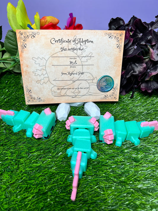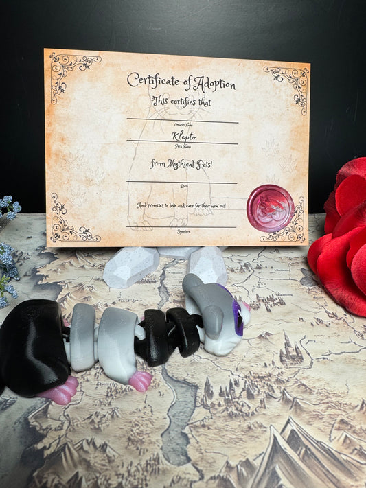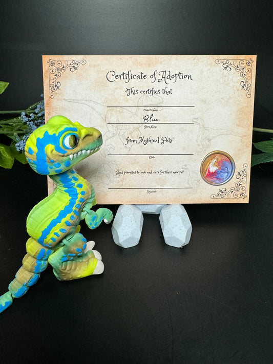 Each pet comes with a sealed adoption certificate, complete with biography, name, age and more!