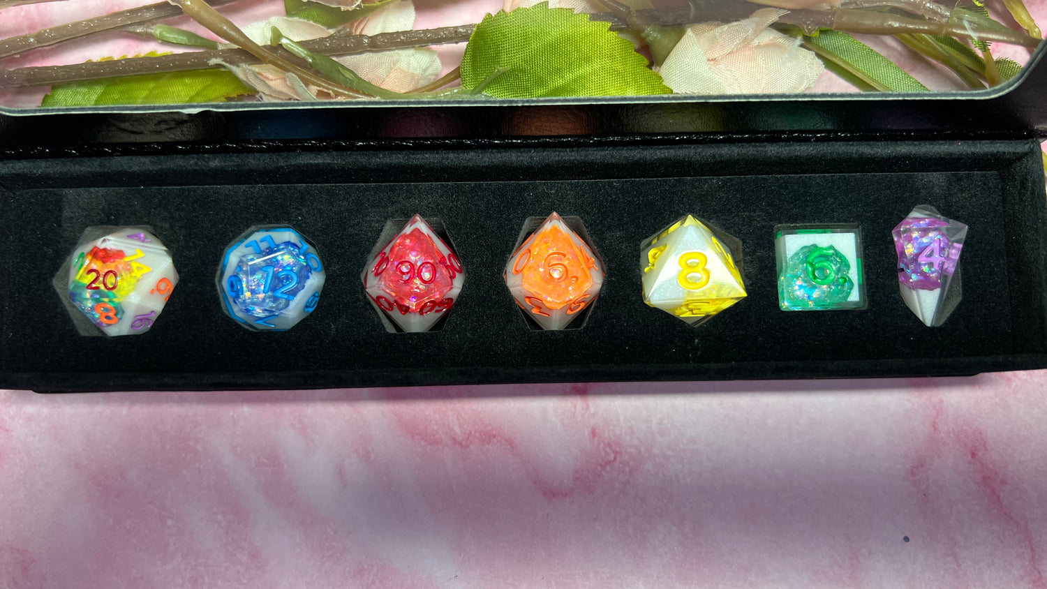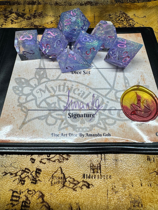 Every die is handmade, sanded, and polished to a glossy shine! We ensure all of our Mythical Dice are high quality and as flawless as possible.