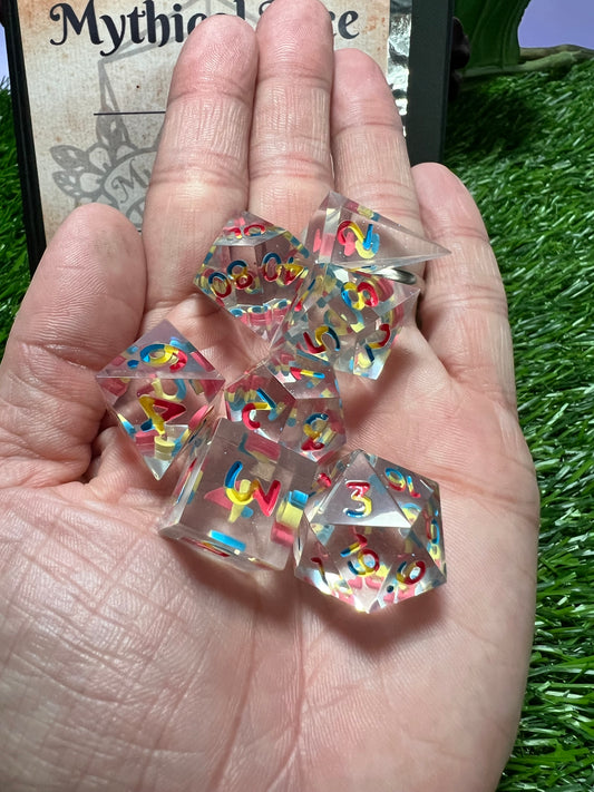 Pride - Standard 7 Set Dice - Fine Art Dice - Pansexual Flag Numbers