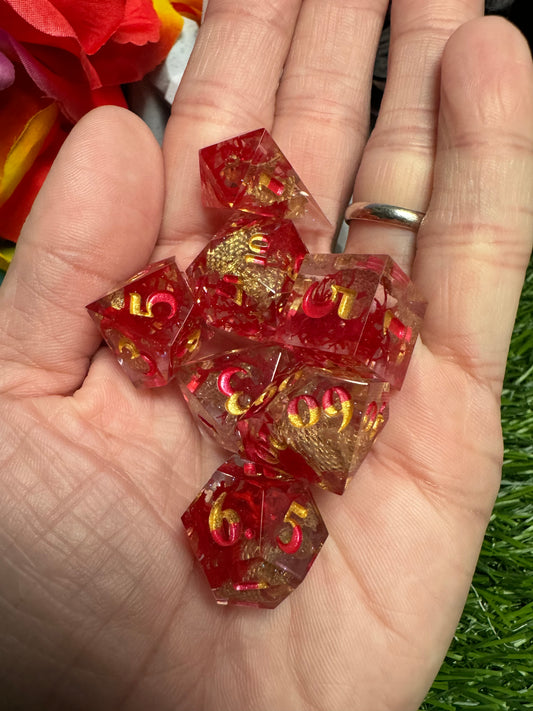 Red Mist - Standard 7 Set Dice - Fine Art Dice - Blood Core D20