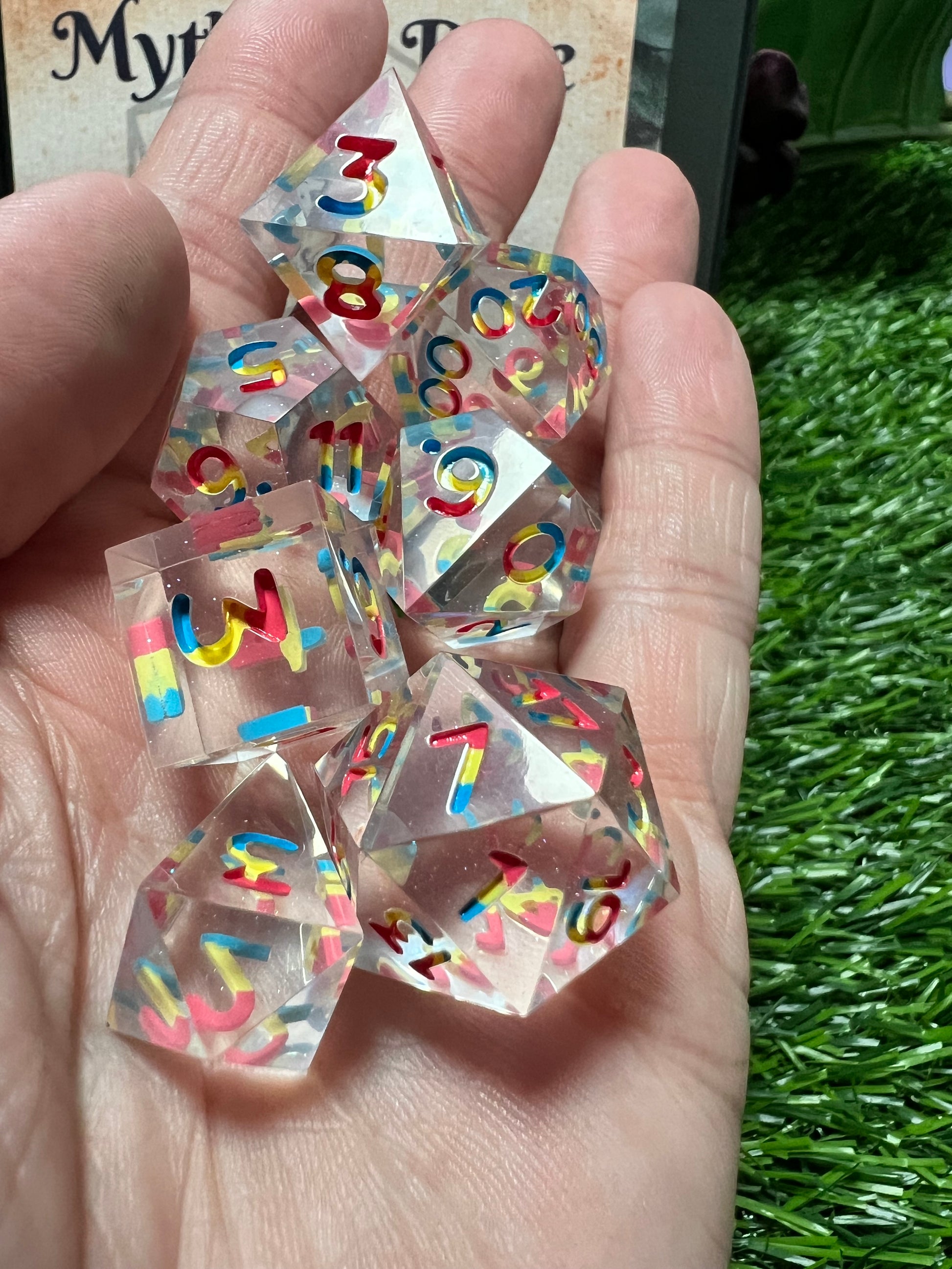 Pride - Standard 7 Set Dice - Fine Art Dice - Pansexual Flag Numbers